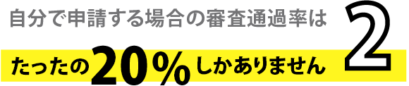 なんとしても審査を通したい状況にもかかわらず、通常の創業融資の成功率は、20%以下と言われています。つまり、専門家のサポートなしで創業融資を申し込んだ場合、10人中8人は審査に落ちるということです。さらに、専門家であっても融資の成功率が50%程度の業者も珍しくはありません。